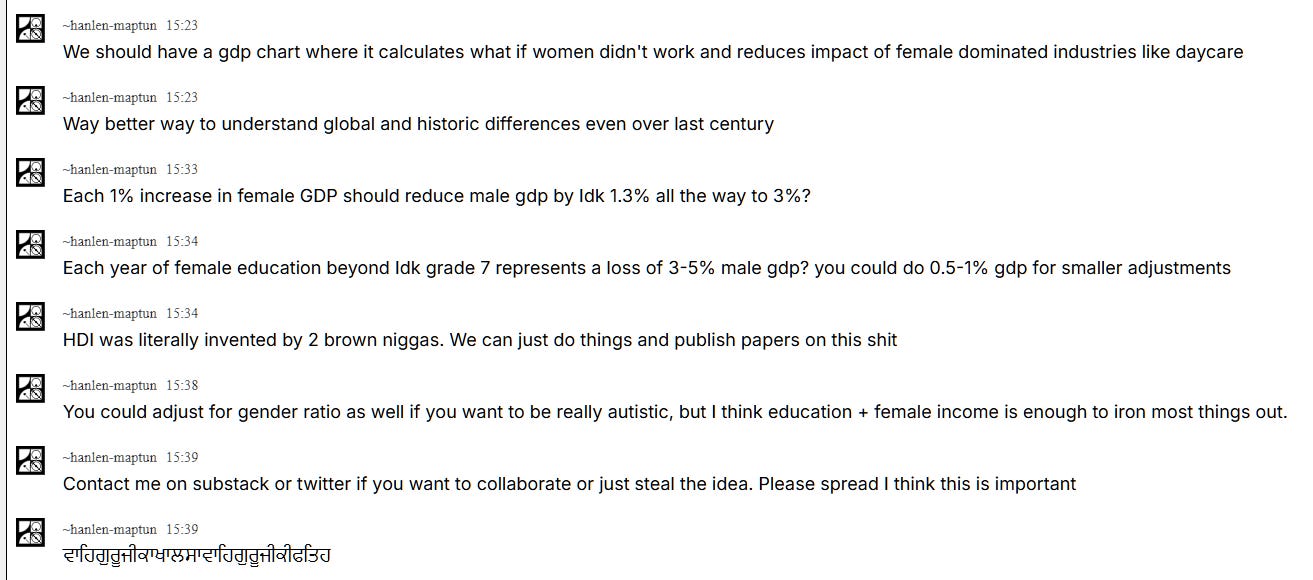 I think that it's possible a higher female GDP % correlates with lower development, especially when adjusted with the metrics we discuss above to produce a sort of “real” household/male income.